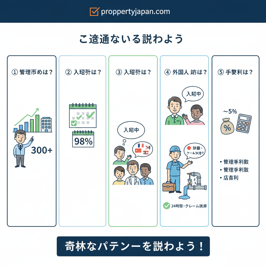日本に住んでいない海外投資家にとって、物件そのもの以上に重要なのが「管理会社(Property Management Company)」の存在です。彼らはあなたの代わりに家賃を集め、トラブルを解決し、物件の価値を守る唯一のパートナーだからです。