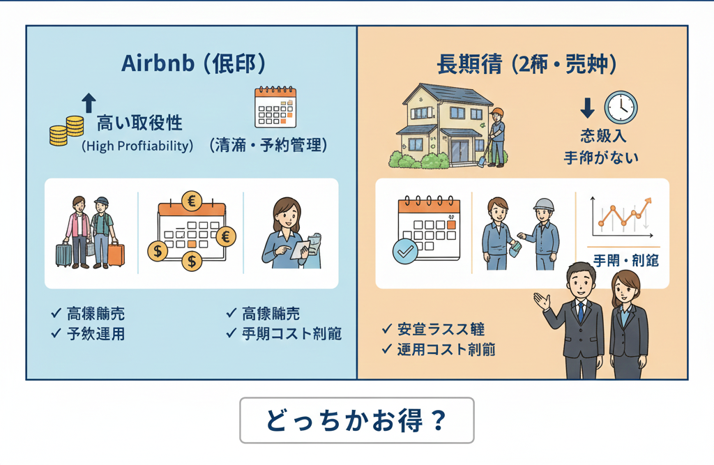 日本の不動産投資において、物件を購入した後の運用方法は収益に直結する重要な決断です。大きく分けて、観光客向けの「短期賃貸(民泊)」と、居住者向けの「長期賃貸」の2つの選択肢があります。