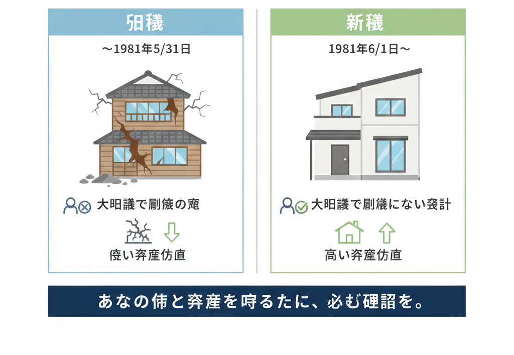 地震大国である日本で不動産を購入する際、立地や利回りよりも先に確認すべき数字があります。それは「建築年」です。